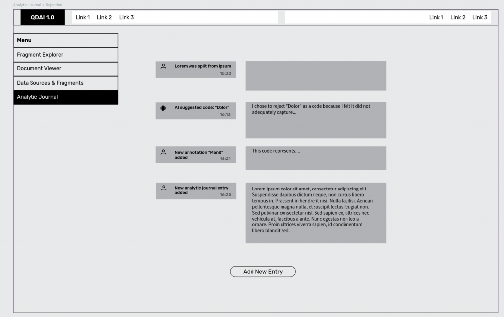 The Interaction challenge: So, how can we build interfaces for workflows that combine the speed of LLM analysis with the human insight and thoughtfulness that is required for reflexivity? So how build interactions that combine the speed of LLM analysis with facilitating the capture/incorporation and exploration of the reflexivity that (currently) only humans can bring?