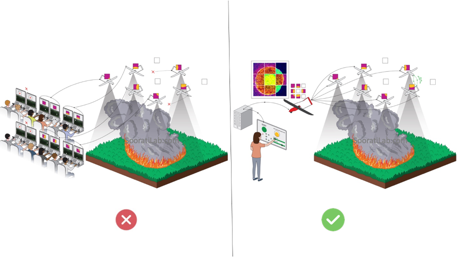 Achieving scalable multi-robot operation requires inverting this ratio: a single operator must be able to understand and control several robots simultaneously (as per image above). The figure below compares the semi-autonomous control paradigms with the proposed human–swarm framework, which is designed explicitly for scalable supervision.